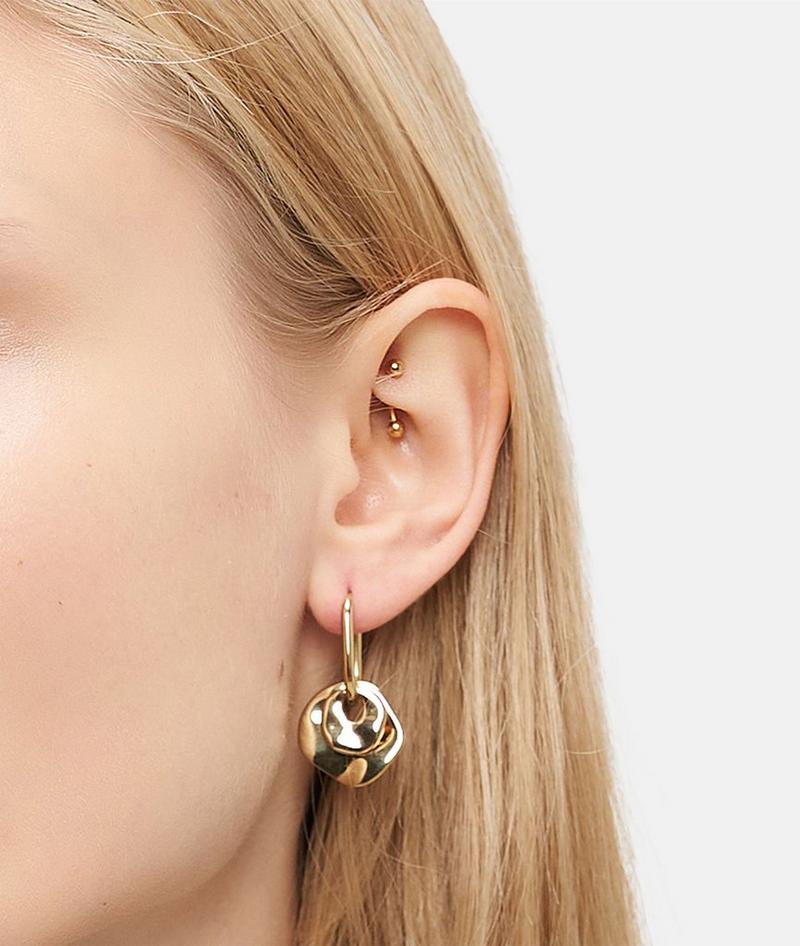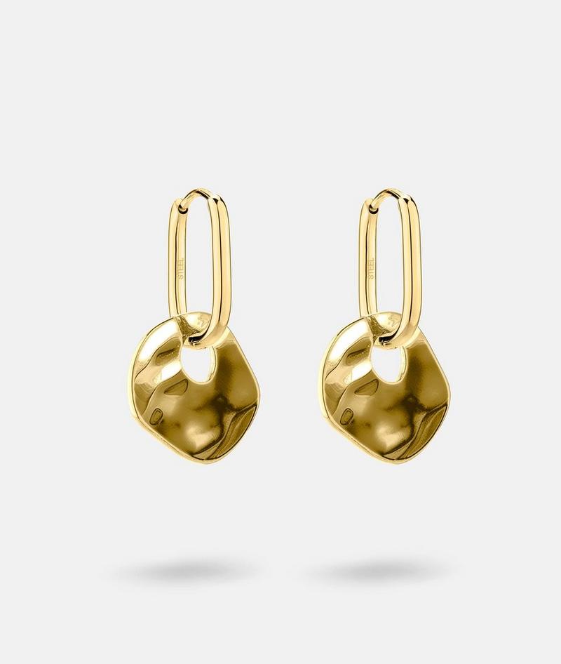 Diese Creolen bringen Bewegung ins Spiel: Mehrere organisch geformte Plättchen hängen locker an der Creole und fangen das Licht bei jeder Bewegung ein. Das verspielte Design trifft auf moderne Eleganz – ein ausdrucksstarkes Accessoire für individuelle Looks.