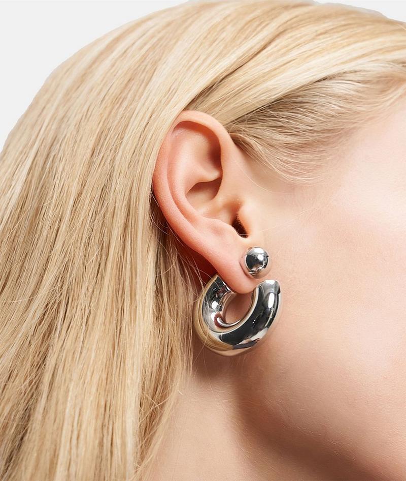 Diese einzigartigen Creolen vereinen modernes Design mit urbanem Charme. Ihre glänzende, silberfarbene Oberfläche sowie die Tragemöglichkeiten machen sie zu einem echten Hingucker. Gefertigt aus hochwertigem Material, bieten sie einen angenehmen Tragekomfort und setzen stilvolle Akzente zu jedem Outfit. Perfekt für alle, die das Besondere lieben!